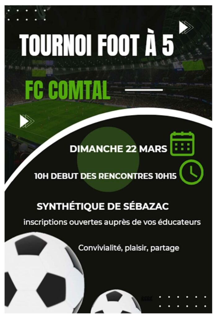 TOURNOI FC COMTAL 2026 Jeudi 14 mai 2026 TOURNOI FC COMTAL 2026 NOUVEAUTÉ 2026: U7 – U9 – U11 TOURNOI Francis GUIBERT à Sébazac U13 en foot à 11 : Lire la suite →